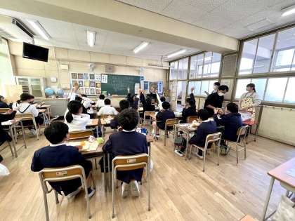 3枚目の写真は、みかんのおかわりにたくさん手が上がっているようすです。熊本県産の、甘くておいしいみかんでした。