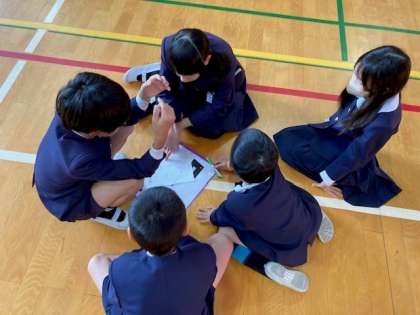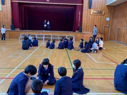 今日の集会は「色ビンゴ」でした。ほとんどの班がビンゴを達成しました。