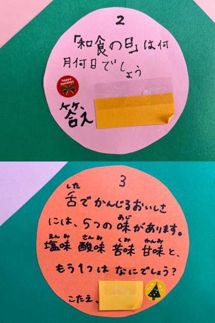 食育アドベントカレンダーの答えは、「11月24日」と「うま味」です。