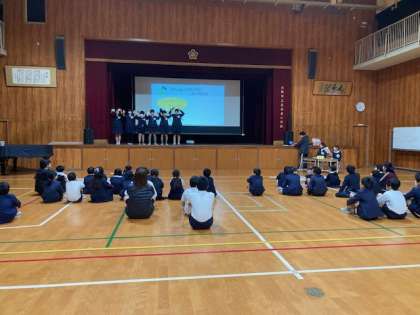 今日の集会は、けんこう委員会による委員会発表でした。「はんかち・ティッシュ」の大切さをアピールしてくれました。