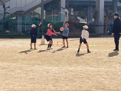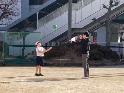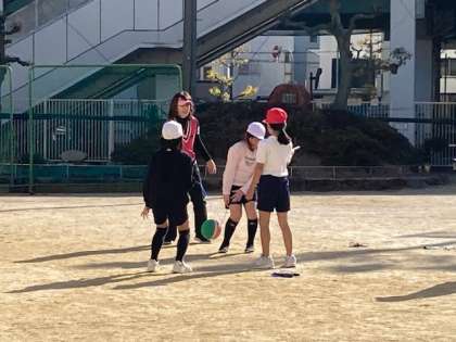 大なわをしながら、ボールキャッチの練習をしました。なかなか難しいようです。