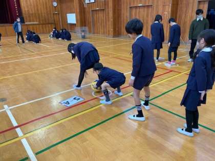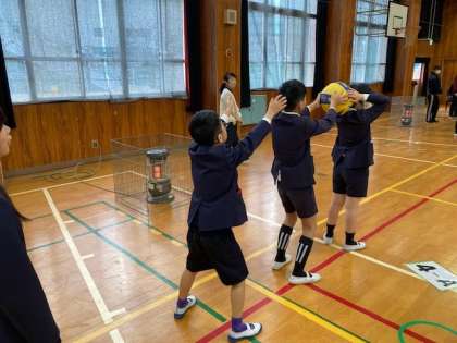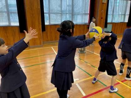 今日の集会は「ボール送り」でした。素早くボールを次の人にまわしていました。