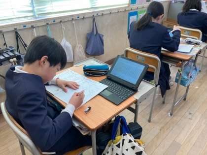 熱心にまとめの問題に取り組んでいます。