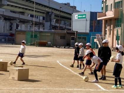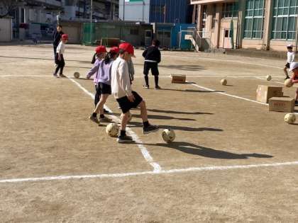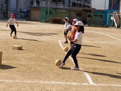 的あて(ボールけり)遊びをしていました。
