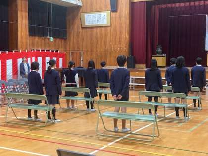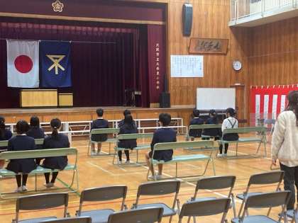 6年生は、創立150周年記念式典の初めから参加します。自分の座席を確認して、式の流れを覚えました。