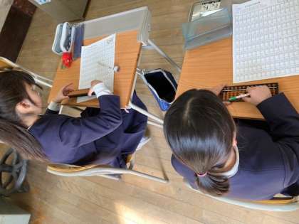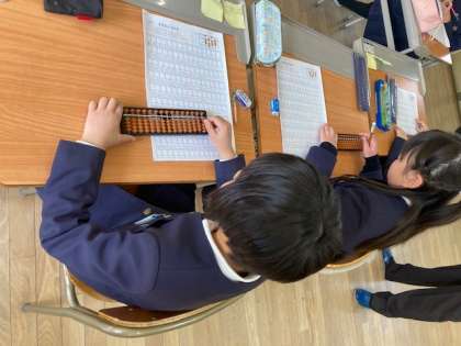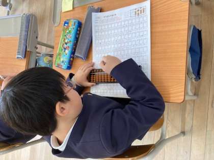 今日は「そろばん教室」です。ゲストティーチャーを招き、そろばんを習いました。すごい集中力でした。