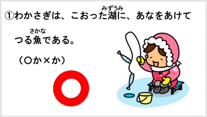 わかさぎは、凍った湖に穴をあけて釣ることを知った子どもたちは、「やってみたーい!」と言っていました。