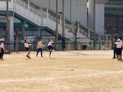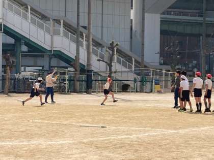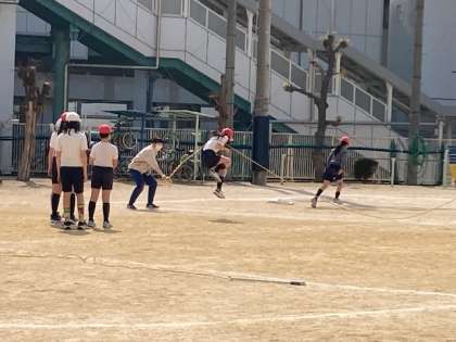 暖かく感じる運動場、全員大縄をして、盛り上がっています。