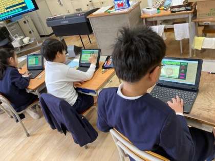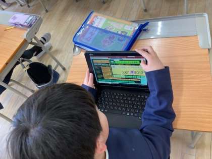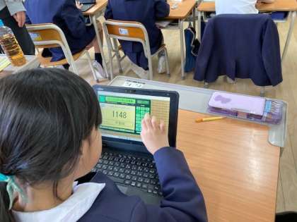 タブレットを使用し、算数ドリル問題に取り組んでいました。