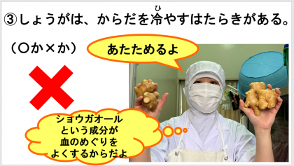 給食時間は、しょうがについてのクイズをしました。