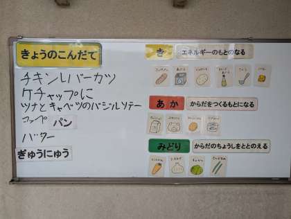 本日の献立は、チキンレバーカツ、ケチャップ煮、ツナとキャベツのバジルソテー、バター、コッペパン、牛乳です。