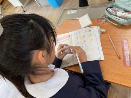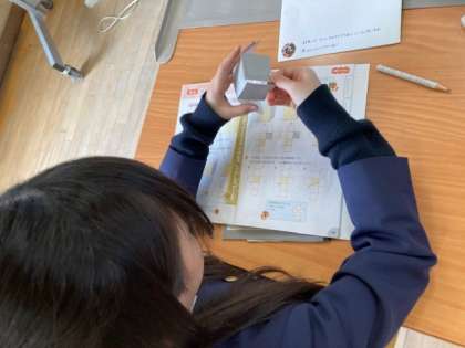 3学期最終日です。4年生は算数の時間に、展開図の学習をしていました。