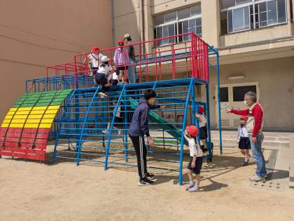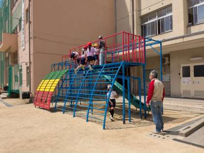 1・2年生は体育をしていました。遊具を使って楽しく体ほぐしです。