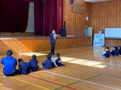 さて、今日の朝会では、にっしーパトロール隊の方の紹介をしました。