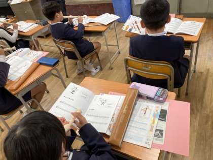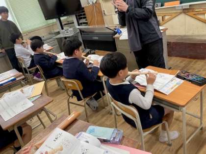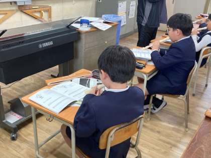 合同音楽です。4年生のスピードに合わせて、3年生がリコーダーの練習を頑張っていました。