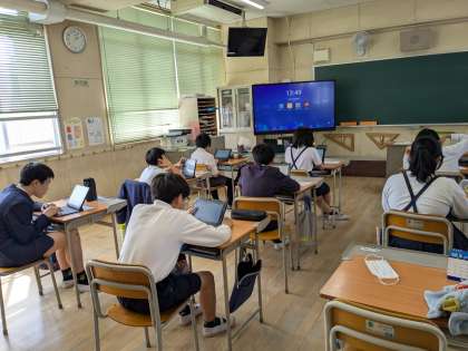 本日、6年生は全国学力・学習状況調査の質問紙に取り組んでいます。オンラインでの回答です。