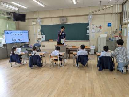 1年生は国語の学習。口形に気をつけながら、大きな声ですらすら読んでいました。