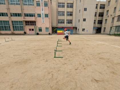 踏み切る時のハードルとの距離、飛び越す時の足の位置…など、気をつけなければならないことがたくさんあります。何度も練習して感覚をつかんでほしいと思います。5・6年生のみんな、頑張ってね!