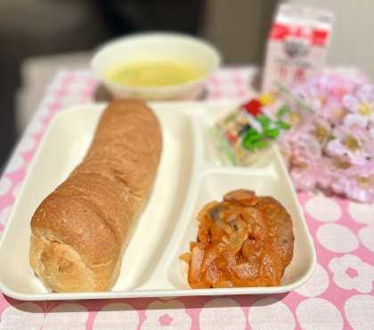 コーンスープとの組み合わせも良く、「おいしい〜」とニコニコの給食時間でした(^^)