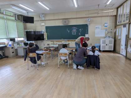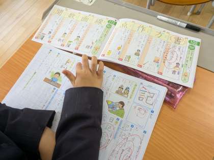 2年生は漢字の学習でした。書き順に気をつけながら練習していました。みんな字がきれいです。