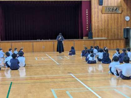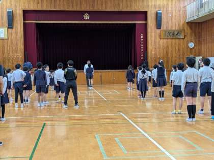 今日の児童朝会の様子です。校長先生からはゴールデンウィークになるので、生活リズムを崩さないよう、体調管理をしっかりしましょうというお話がありました。また、看護当番の先生からは、4月の生活目標「気持ちのよいあいさつをしよう」の振り返り、また5月の生活目標「時間を守って行動しよう」についてのお話がありました。
