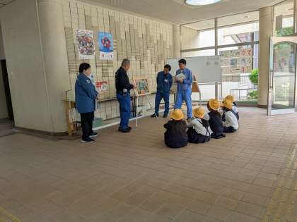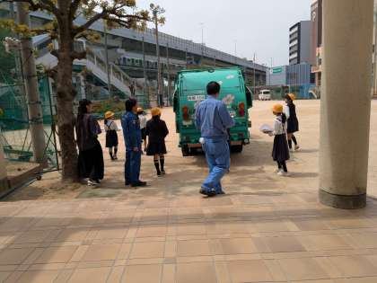 4年生は環境学習で、西部環境事業センターの方々の出前授業です。パッカー車の仕組みや名前の由来などについて、紙芝居やクイズを通して楽しく教えてくださっています。ごみの分別などについても学習します。日々の生活に生かせる学習ですね。