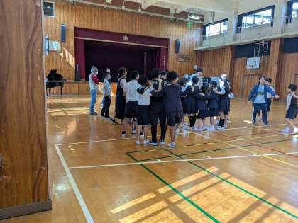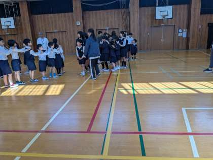 今日の児童集会は、じゃんけん列車でした。みんなの笑顔がはじけていました。高学年が低学年に優しく接する姿も見られて、朝からあたたかい気持ちになりました。