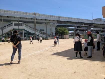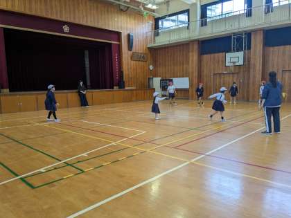 今日の昼休みはたてわり活動。異学年のお友だちと仲良く遊んでいます。