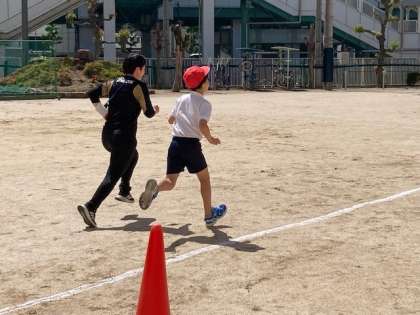 足を素早く運び、まっすぐ腕を振るように気を付けて走りました。