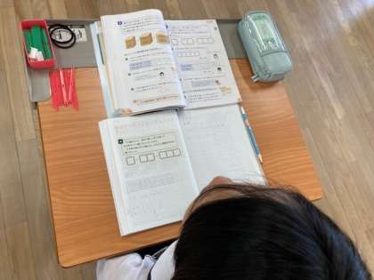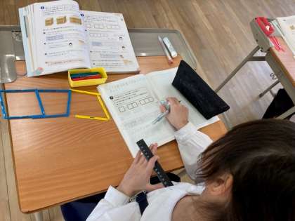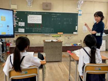 棒を使って正方形を並べていきます。使った棒の数を計算で求める方法を考えました。最後に、△と□を使って式に表しました。