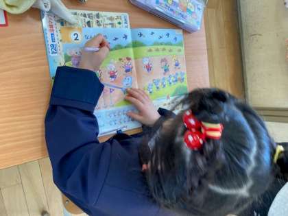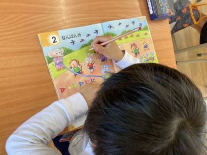 「なんばんめ」の学習をしました。前から、後ろから何番目などの問題に取り組みました。