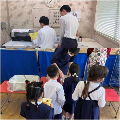 1年生は「きょうは誰のクイズかな?」と、おにいさんやおねえさんが考えるクイズを楽しみにしているようです。