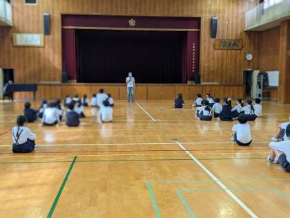 今朝は児童朝会でした。校長先生からは放課後の過ごし方、特に公園での過ごし方についてお話がありました。ルールを守って仲良く怪我なく遊ぶこと、公園のものを大切に扱うこと、公園を管理している方への感謝を忘れないこと、などのお話がありました。看護当番の先生からは、今月の生活目標「時間を守って行動しよう」についての話がありました。児童会からは、緑の羽根募金への協力のお願いについて、話がありました。