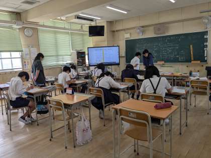 6年生算数、分数のかけ算・わり算です。みんなやり方をしっかり理解し、すらすら解いていました。