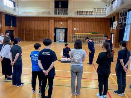西消防署の方を招き、講習会を開催しました。保護者の方も参加していただきました。