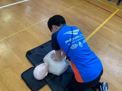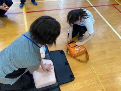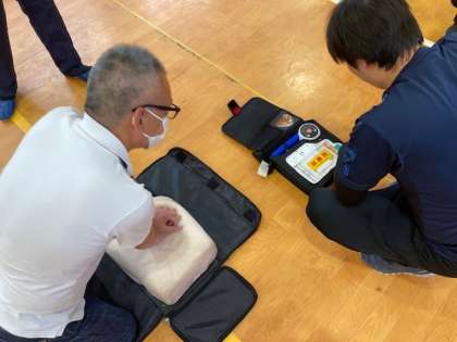 後半は、AEDの活用と胸骨圧迫の訓練を行いました。