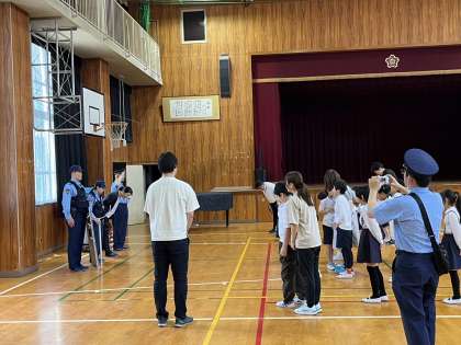 今日は不審者が学校へ侵入した、という設定で防犯訓練をしました。西警察署と連携を取り、本格的な訓練です。慌てず冷静に対応することの大切さを知りました。色々なパターンを想定し、日頃から危機感をもって子どもたちを見守らなければいけない、と教職員一同、再認識しました。