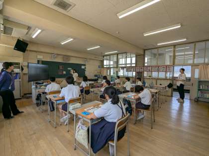 6年生の、歯と口の健康教室の様子です。話をしっかり聞き、自分の歯と歯茎の健康状態を鏡で一生懸命確認していました。いつまでも健康な歯でいたいですね。