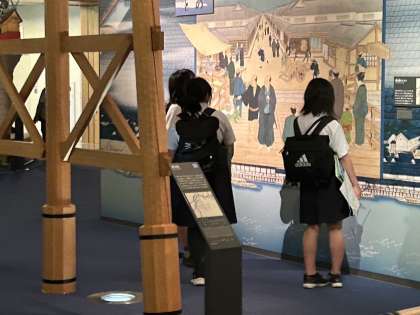 大阪歴史博物館では、しっかり展示物をみて学んでいます。