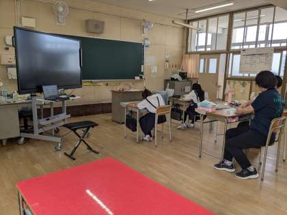 6年生は、総合的学習の時間でした。自分の取扱説明書、発表に向けて準備していました。
