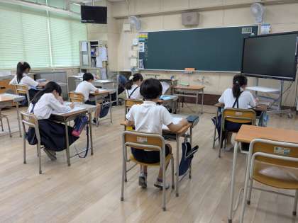 4年生は算数のテストでした。角度の単元テストでした。みんな、できたかな。