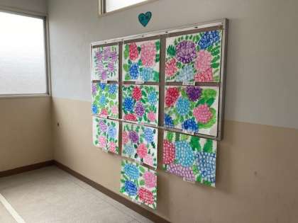 「あじさい」の作品を掲示しています。とてもきれいです。