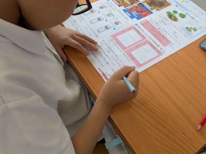 4年生は理科のテストでした。問題をしっかり読んで、頑張って!