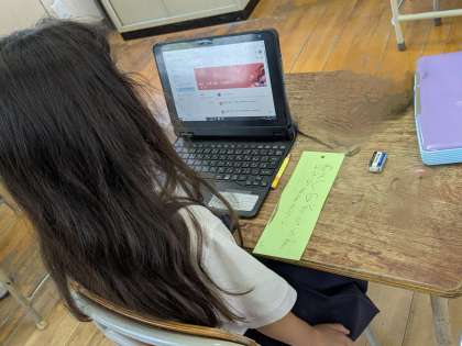 1・2年生は七夕の短冊を作っていました。みんなの願い事が叶うといいですね。