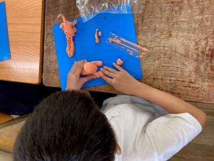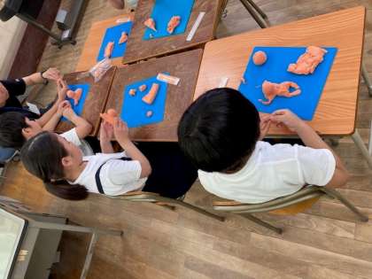 「シーサー」作りを行っていました。シーサーは、沖縄の家などに置かれる魔除けの獅子像のことです。災難や悪霊を払い、幸福を呼び込むと言われてています
