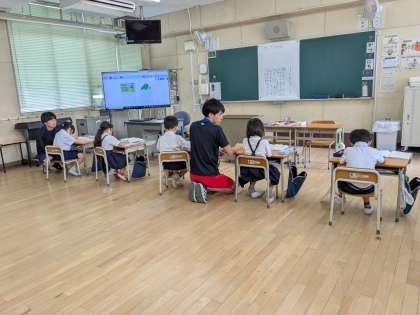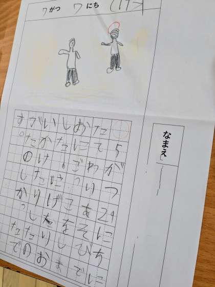 教科書や先生の日記を見本にしながら、一生懸命書いていました。かわいい絵日記が仕上がっていました。ぜひ、夏休みも絵日記書いてくださいね。