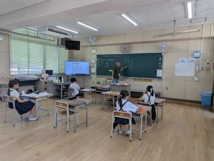 2年生は算数で、引き算のひっ算に取り組んでいました。2回くり下がりがあるので、なかなか大変な計算です。少し苦戦している子もいるようですが、それでもみんな一つひとつ確かめながら頑張っていました。