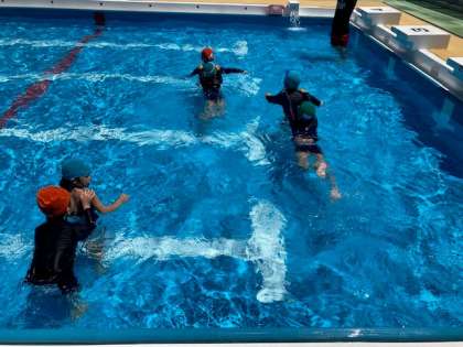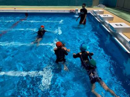 3時間目は、低学年のプールの時間です。水分補給をしっかり行い練習しています。