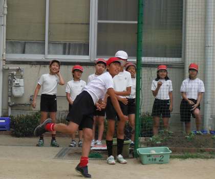 今日は、全学年で体力テストのソフトボール投げをしました。曇り空でしたが、雨も降ることなく、全学年測定することができました。九条東の最高記録は43メートルでした。