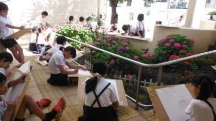 みんな自分が描こうと思ったアジサイをよく見てがんばっていました。